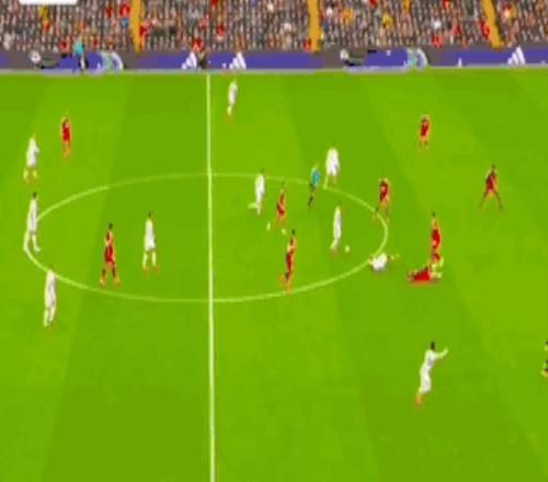 第18分钟,萨拉赫和伊萨克打出精彩配合,关键时刻,卢克肖倒地放铲,化解险情。