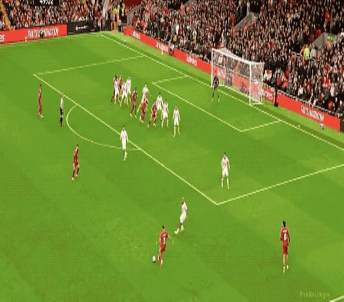 第13分钟,利物浦形成了首次射门,萨拉赫任意球传中,范戴克头球攻门顶偏。