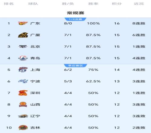 8连胜!8连败!CBA疯狂一夜:全胜剩1队广厦助攻广东附最新排名