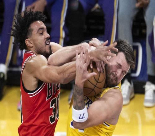 末节初段,湖人上来先挑战成功拿回球权,但公牛这边连续追分,琼斯两罚两中以后只差7分了。里夫斯挺身而出连砍5分打停公牛。回到比赛,老詹又造犯规罚球,艾顿篮下抛投连续打进,东契奇篮下背打再中领先到了18分,基本上把比赛打花了。但琼斯连得4分,湖人喊个暂停。然后东契奇又是两记三分,基迪三分止血但分差太大,公牛喊停换下主力投降了。
