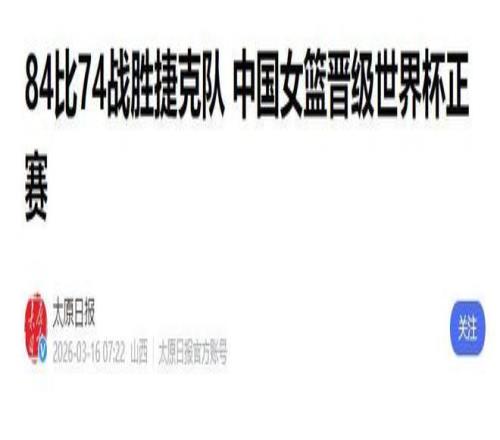 3月15日晚,中国女篮坐镇主场迎来世预赛第四轮关键对决——迎战欧洲劲旅捷克队。经过四节鏖战,姑娘们以84比74力克对手,不仅赢下这场硬仗,更提前锁定2026年柏林世界杯入场券,迈出通往世界顶级舞台的关键一步。