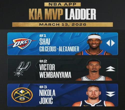 NBA公布的最新MVP排行榜,文班亚马已升至第二,亚历山大继续高居榜首,约基奇跌至第三,同时前者今年还是DPOY的头号竞争者。