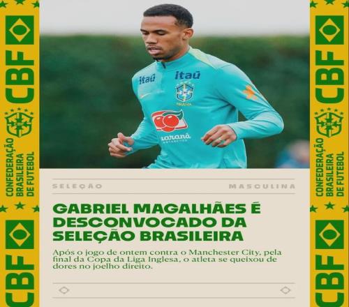 官方:巴西足协宣布加布里埃尔因膝伤(右膝疼痛)退出了本次国家队。